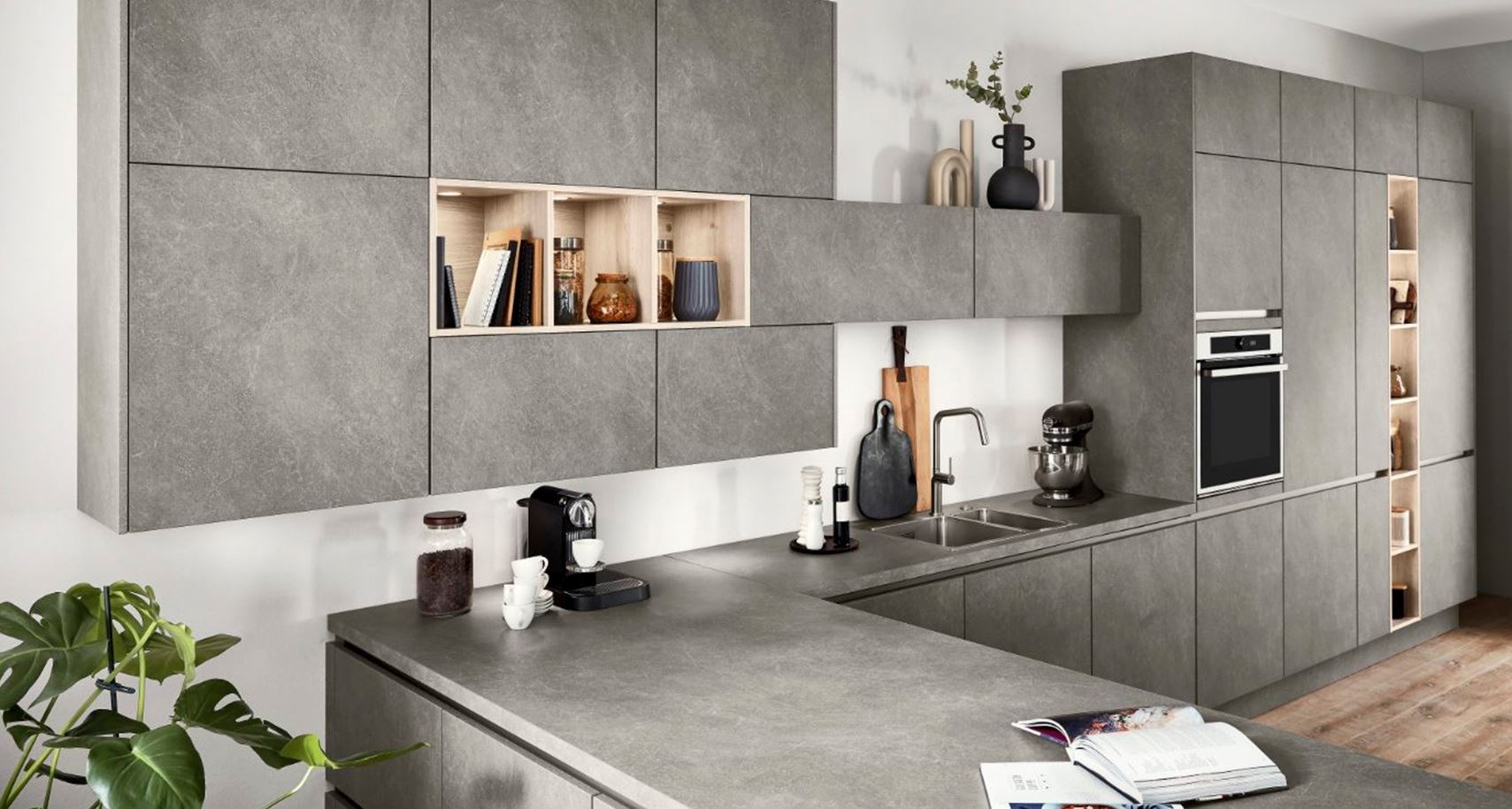 A Nobilia StoneART a szürke beton és pala reprodukciójával egy kivételesen esztétikus és természetes megjelenésű konyhát varázsol otthonodba.