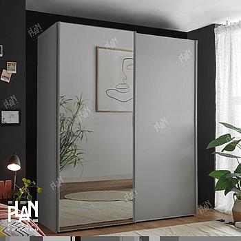 Sinfonie Plus tolóajtós szekrény, 200x222x68 cm, szürke dekor / tükör