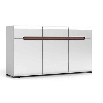 Glossy KOM3D3S/8/15 széles komód 150x84x41cm magasfényű fehér/wenge betét