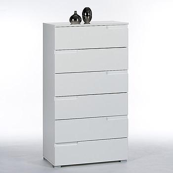 Lidia magaskomód,6fiókos, magasfényű fehér, 65x119x40 cm
