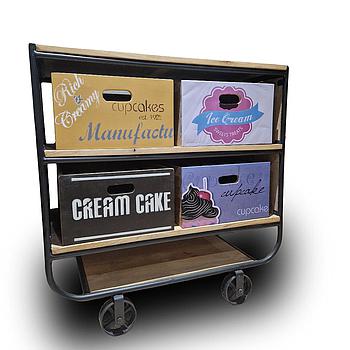 Belize zsúrkocsi tömör mangófa, görgős, 89x50x91cm"k"