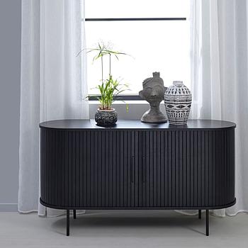 Lamel komód, íves, fekete tölgy furnér, 140x76x45 cm
