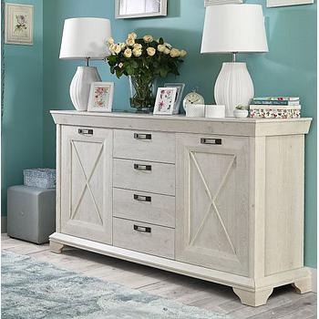 Kastel komód 2 ajtós 4 fiókos, fehér fenyő, 178x96x48 cm