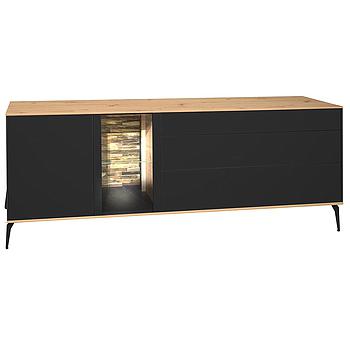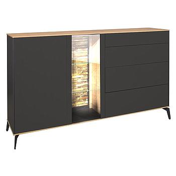 Fontana széles magas komód, mauvella tölgy / fekete, 150x130x40 cm