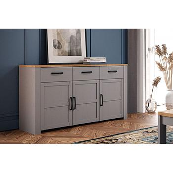 Provance komód, 3ajtó, 3fiók, szürke / riviera tölgy, 166x87x42 cm