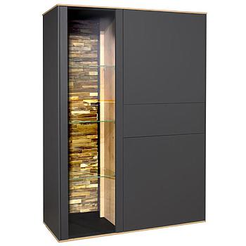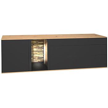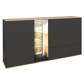 Colombus komód, antracit szürke matt lakk/csomós tölgy, LED világítással, 169x90x42cm