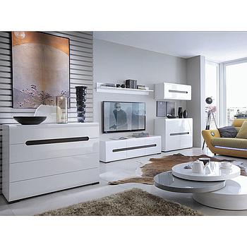 Glossy elemes nappali magasfényű fehér / mágikus wenge