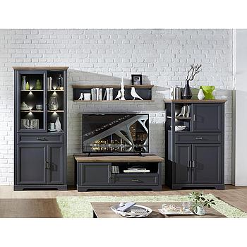 Medan 80 nappali összeállítás világítással, matt grafit-konyak tölgy,320x199x50cm"k"