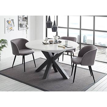 Und bővíthető kör étkezőasztal, fehér asztallap/grafit-antracit csillag láb ,130-170x78cm(ksz)