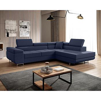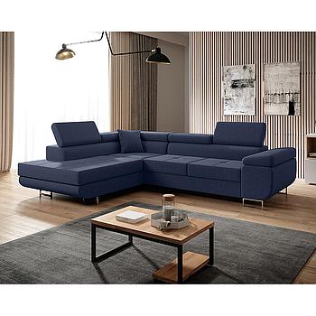 Clematis sarokgarnitúra, balos, kék, 275x202 cm +1 díszpárna