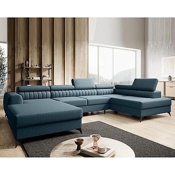 Daisy U ülőgarnitúra, balos lábtartó, kék, 203x350x203 cm
