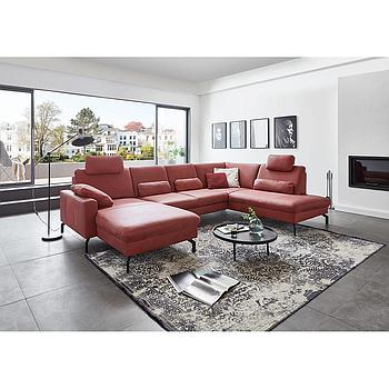 Dakka U alakú ülőgarnitúra, dönthető sarok háttámla funkcióval, 2 db fejtámasszal, Vivre Steele bőrrel, 330x173/262 cm