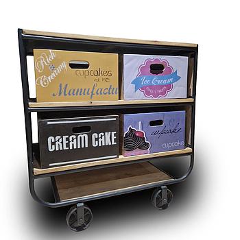 Belize zsúrkocsi tömör mangófa, görgős, 89x50x91cm"k"