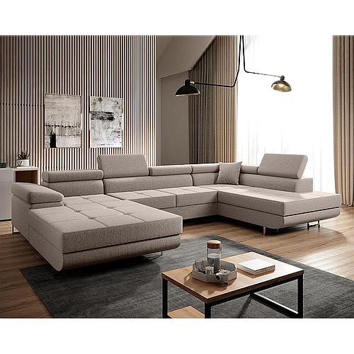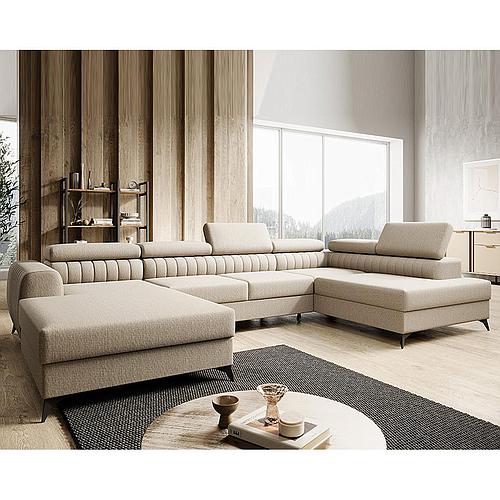 Coral U ülőgarnitúra, balos lábtartó, R462 bézs egyszínű, 217x337x165 cm