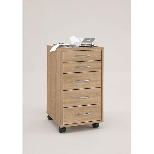 A D-Line konténer minőségi laminált bútorlapból készült, amely biztosítja a tartósságot és az esztétikus megjelenést; egyszerűen tisztítható és karbantartható, így hosszú használat után is megőrzi majd újszerű állapotát. Modern faerezet mintázata természetes megjelenést kölcsönöz. Három fiókkal rendelkezik, elegendő helyet ad az irodai kellékek, dokumentumok, iratok és egyéb tárgyak rendszerezett tárolására. A fiókok könnyen kihúzhatók, simán futó fém síneken mozognak, így használatuk mindig kényelmes és gördülékeny.