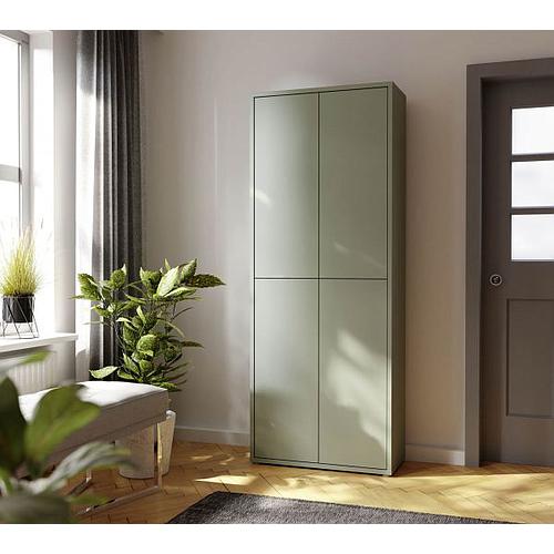 Adj előszobádnak egy csipetnyi természetes eleganciát a Festa előszobafal szekrényösszeállítással, a divatos Salvia-zöld színben és természetes Mauvella-tölgy kiemelt résszel. Ez a teljes gardróbmegoldás tartalmaz egy fogasfalat, egy tükröt és egy komódot, hogy stílusosan rendezhesd el ruháidat és a kiegészítőket. A fogasfal négy akasztóval és egy kalaptartóval elegendő helyet biztosít a kabátoknak, sapkáknak, vagy akár a táskáknak is. A kétajtós, két fiókos komód tökéletes a cipők, sálak vagy sapkák tárolásához, miközben extra polcfelületet kínál dekorációk vagy kedvenc képek számára. A tükör kiegészíti a szettet, és megkönnyíti az öltözék ellenőrzését, mielőtt kilépsz az utcára. A lágy Salvia-zöld és a meleg Mauvella-tölgy kombinációja természetes hangulatot kölcsönöz az előszobának.