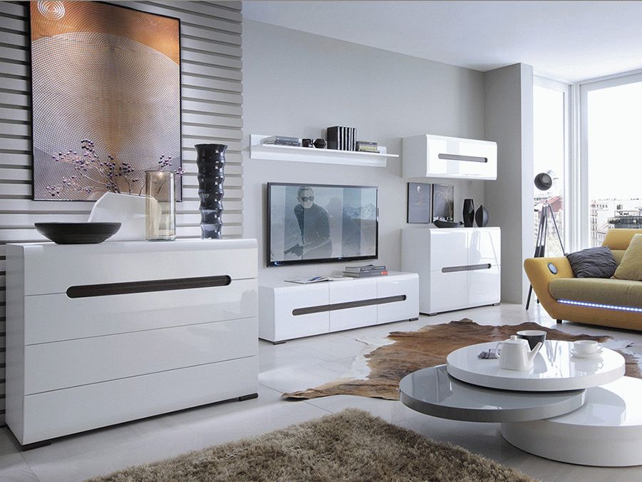 Glossy elemes nappali magasfényű fehér / mágikus wenge