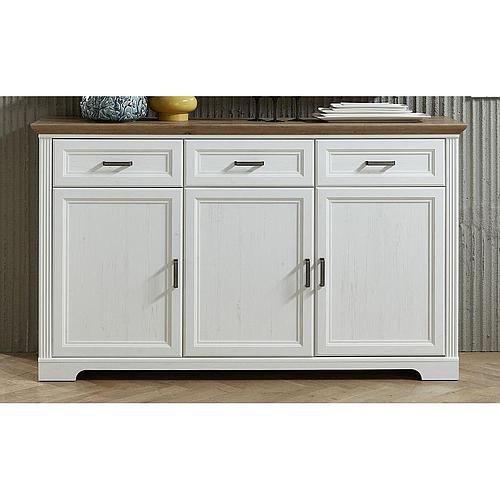 Kastel komód 3 ajtós 4 fiókos, fehér fenyő, 178x96x48 cm