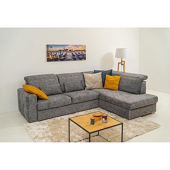 ravenna sarok ülőgarnitúra, állítható fejtámlákkal, vendégággyal, felnyíló tárolós elemmel, szürke