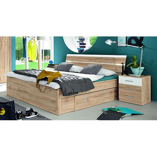 A ROSSO ágykeret modern megjelenésével, egyedi jelleget kölcsönöz hálószobájának fehér fényes és homoktölgy dekorból.
