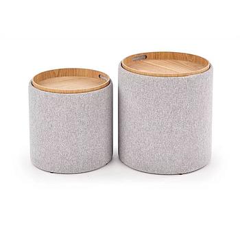 Aniko tárolós puff 2-es szett, világos szürke / fa tető