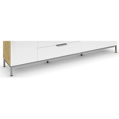 Shine komód, 3ajtós, 3fiókos, artisan tölgy-fehér üveg front, króm fogantyú, 199x61x42cm